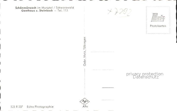 41768486 Schoenmuenzach Gasthaus zum Steinbock Luftkurort im Murgtal Schwarzwald postalisch nicht gelaufen Erhaltung siehe scans KatCode: 11110008237004