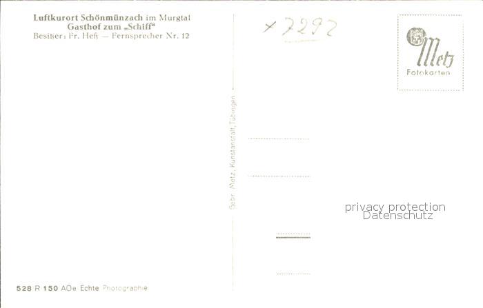 41800994 Schoenmuenzach Gasthof zum Schiff postalisch nicht gelaufen Erhaltung siehe scans KatCode: 11110008237004