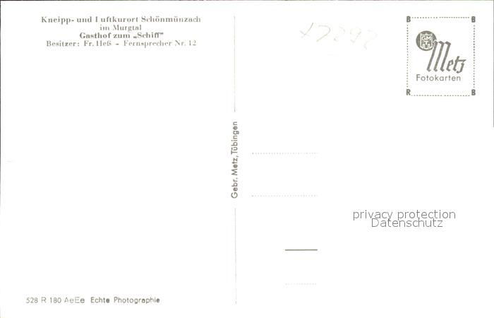 41801013 Schoenmuenzach Gasthof zum Schiff Ortsansicht postalisch nicht gelaufen Erhaltung siehe scans KatCode: 11110008237004
