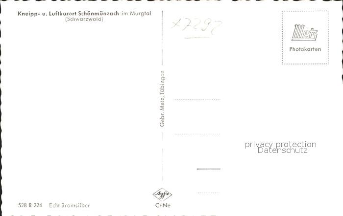 41768517 Schoenmuenzach Hotel Berghof Kneipp und Luftkurort Murgtal Schwarzwald Bromsilber postalisch nicht gelaufen Erhaltung siehe scans KatCode: 11110008237004