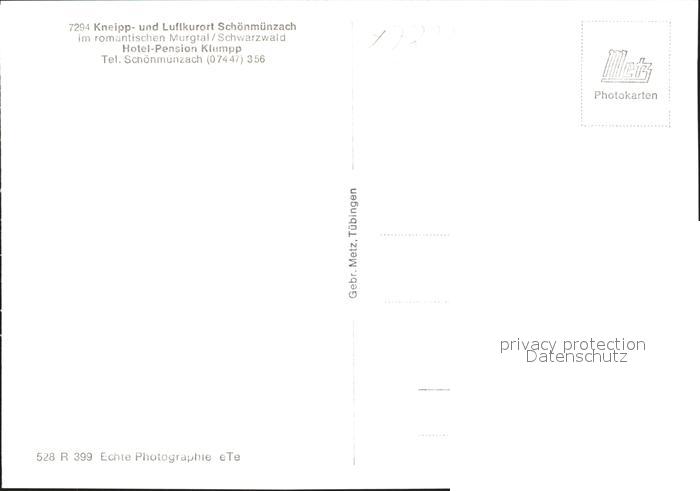 41801383 Schoenmuenzach Hotel-Pension Klumpp postalisch nicht gelaufen Erhaltung siehe scans KatCode: 11110008237004