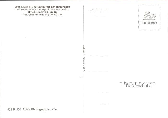 41801382 Schoenmuenzach Hotel-Pension Klumpp postalisch nicht gelaufen Erhaltung siehe scans KatCode: 11110008237004