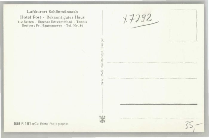 40714438 Schoenmuenzach Hotel Post * postalisch nicht gelaufen Alte Ansichtskarte Postkarte Katcode 11110008237004