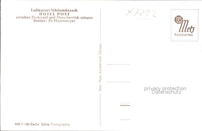41768563 Schoenmuenzach Hotel Post Kneipp und Luftkurort Murgtal Schwarzwald postalisch nicht gelaufen Erhaltung siehe scans KatCode: 11110008237004