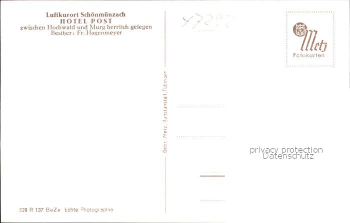 41768564 Schoenmuenzach Hotel Post Kneipp und Luftkurort Murgtal Schwarzwald postalisch nicht gelaufen Erhaltung siehe scans KatCode: 11110008237004