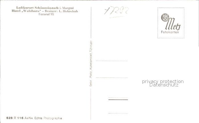 41801012 Schoenmuenzach Hotel Waldhorn postalisch nicht gelaufen Erhaltung siehe scans KatCode: 11110008237004