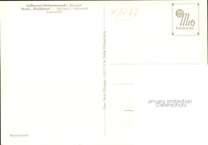 41801391 Schoenmuenzach Hotel Waldhorn Bauernstube postalisch nicht gelaufen Erhaltung siehe scans KatCode: 11110008237004