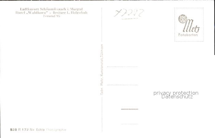 41801019 Schoenmuenzach Hotel Waldhorn postalisch nicht gelaufen Erhaltung siehe scans KatCode: 11110008237004