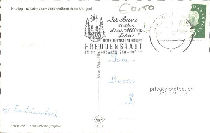 72085182 alte Postkarte Schoenmuenzach im Murgtal postalisch gelaufen KatCode: 11110008237004