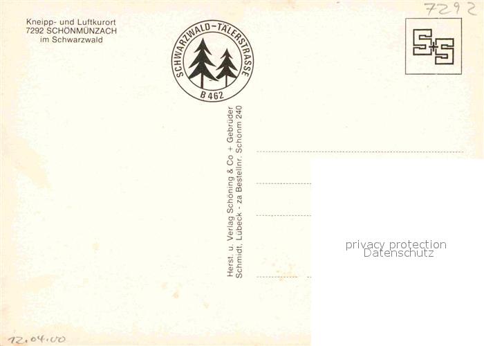 72914840 Schoenmuenzach Kneipp Luftkurort im Schwarzwald Fliegeraufnahme postalisch nicht gelaufen Erhaltung siehe scans [FriedD77] KatCode: 11110008237004