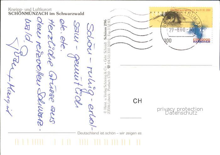 72557588 alte Postkarte Schoenmuenzach Kneipp Luftkurort Ortsansichten postalisch gelaufen Erhaltung siehe scans [KathaD79] KatCode: 11110008237004