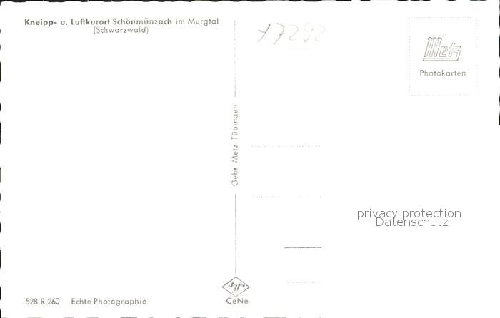 41768506 Schoenmuenzach Kneipp und Luftkurort Murgtal Schwarzwald postalisch nicht gelaufen Erhaltung siehe scans KatCode: 11110008237004