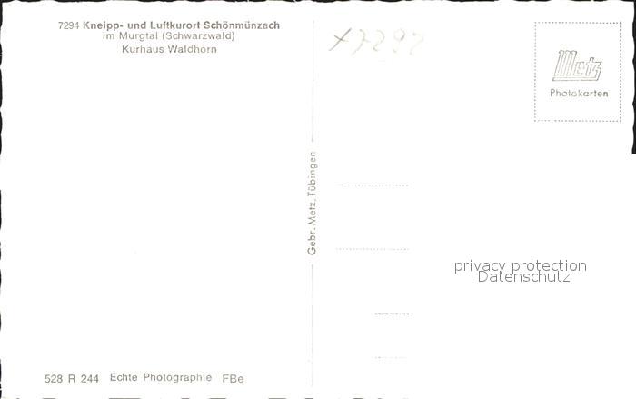 41768488 Schoenmuenzach Kurhaus Waldhorn Kneipp und Luftkurort im Murgtal Schwarzwald postalisch nicht gelaufen Erhaltung siehe scans KatCode: 11110008237004