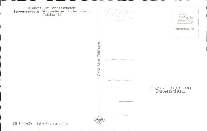 41768460 Schoenmuenzach Kurhotel Im Sonnenwinkel Luftkurort Murgtal Schwarzwald postalisch nicht gelaufen Erhaltung siehe scans KatCode: 11110008237004