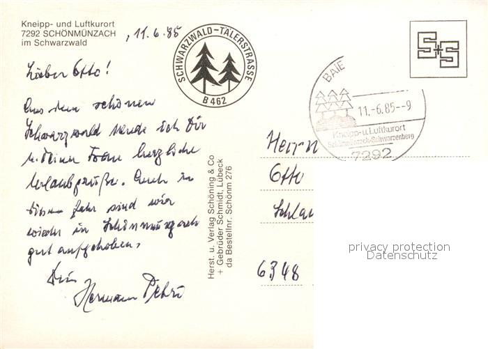73210508 alte Postkarte Schoenmuenzach Kurhotels Sommerberg Kurort im Schwarzwald Murgtal postalisch gelaufen Erhaltung siehe scans [FriedD77] KatCode: 11110008237004