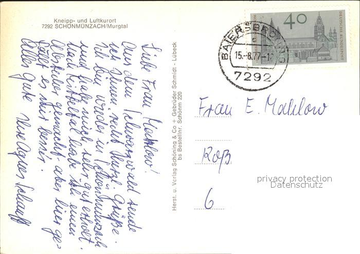 72435423 alte Postkarte Schoenmuenzach Murgtal postalisch gelaufen Erhaltung siehe scans KatCode: 11110008237004