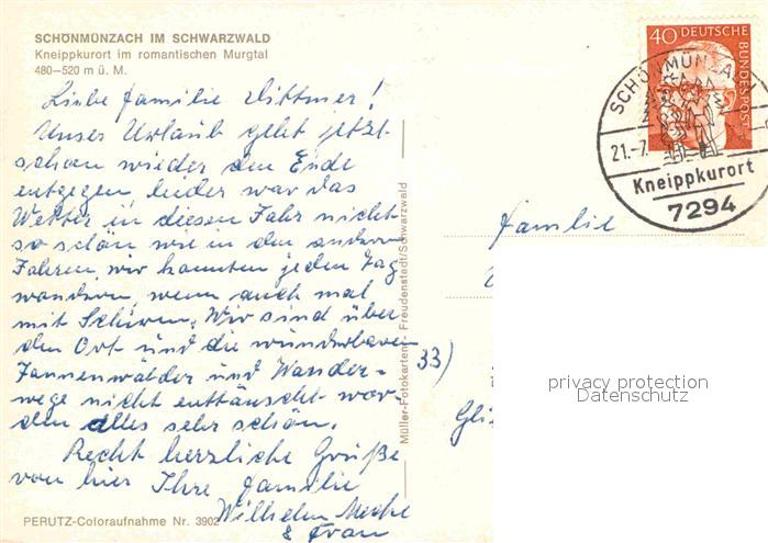 72777425 alte Postkarte Schoenmuenzach Murgtal postalisch gelaufen Erhaltung siehe scans [KathaD81] KatCode: 11110008237004