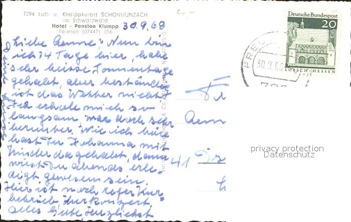 72074815 alte Postkarte Schoenmuenzach Panorama Kneipp Luftkurort Hotel Pension Klumpp Schwarzwald postalisch gelaufen Erhaltung siehe scans KatCode: 11110008237004