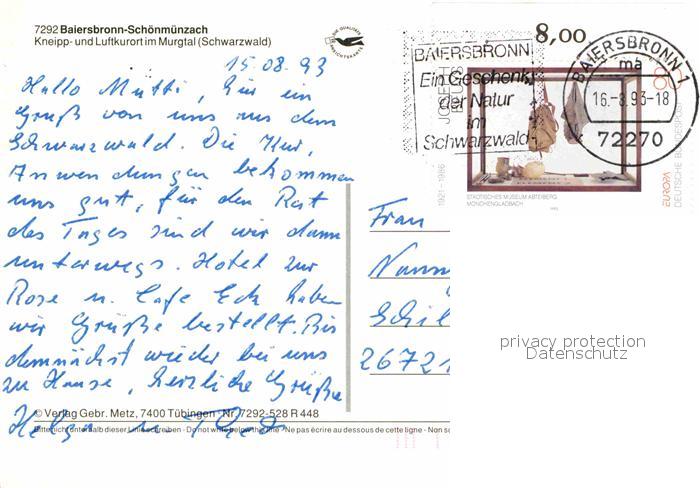 72868372 alte Postkarte Schoenmuenzach Panorama Kneipp Luftkurort im Schwarzwald Holzbruecke postalisch gelaufen Erhaltung siehe scans [FriedD77] KatCode: 11110008237004
