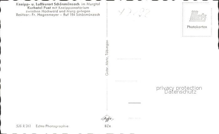41768507 Schoenmuenzach Panorama Kneipp und Luftkurort Murgtal Schwarzwald postalisch nicht gelaufen Erhaltung siehe scans KatCode: 11110008237004