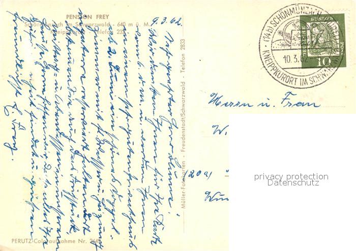 73129939 alte Postkarte Schoenmuenzach Pension Frey postalisch gelaufen Erhaltung siehe scans [KathaD81] KatCode: 11110008237004