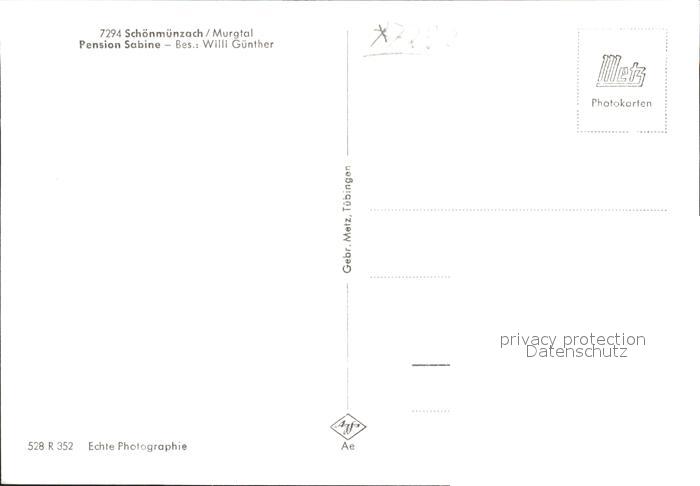 41801376 Schoenmuenzach Pension Sabine postalisch nicht gelaufen Erhaltung siehe scans KatCode: 11110008237004