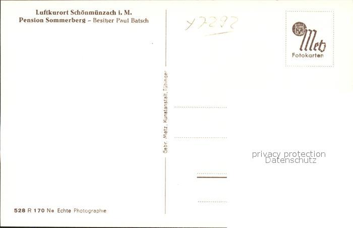 41768568 Schoenmuenzach Pension Sommerberg Kneipp und Luftkurort Murgtal Schwarzwald postalisch nicht gelaufen Erhaltung siehe scans KatCode: 11110008237004