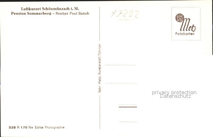 41801021 Schoenmuenzach Pension Sommerberg postalisch nicht gelaufen Erhaltung siehe scans KatCode: 11110008237004