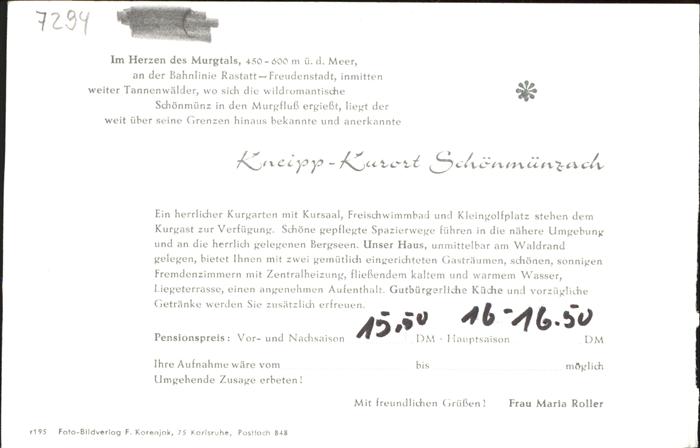 41319065 Schoenmuenzach Restaurant Maria Roller KatCode 11110008237004