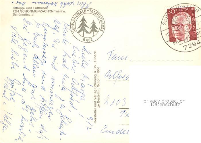 73026240 alte Postkarte Schoenmuenzach Schoenmuenztal postalisch gelaufen Erhaltung siehe scans [PaolaD17] KatCode: 11110008237004