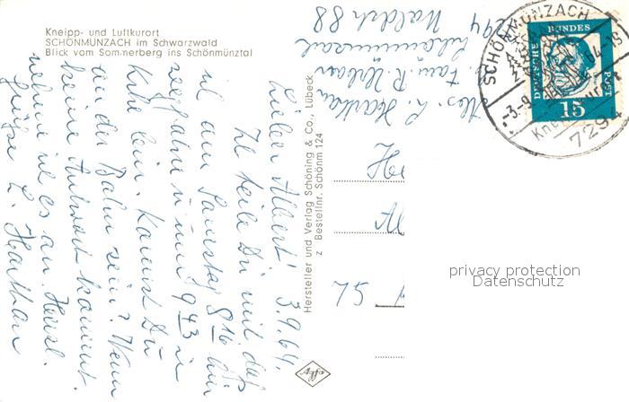 73283778 alte Postkarte Schoenmuenzach Schoenmuenztal postalisch gelaufen Erhaltung siehe scans [NatalD47] KatCode: 11110008237004