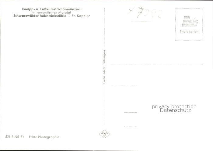 41768882 Schoenmuenzach Schwarzwaelder Milchtrinkstueble Kneipp und Luftkurort Murgtal Schwarzwald postalisch nicht gelaufen Erhaltung siehe scans KatCode: 11110008237004