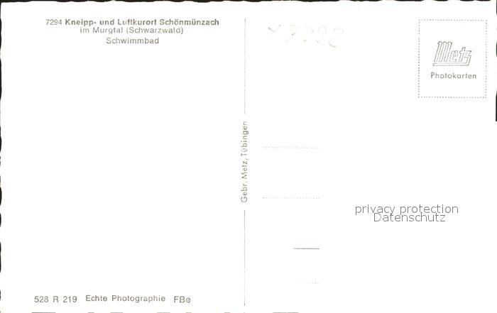 41768516 Schoenmuenzach Schwimmbad Kneipp und Luftkurort Murgtal Schwarzwald postalisch nicht gelaufen Erhaltung siehe scans KatCode: 11110008237004
