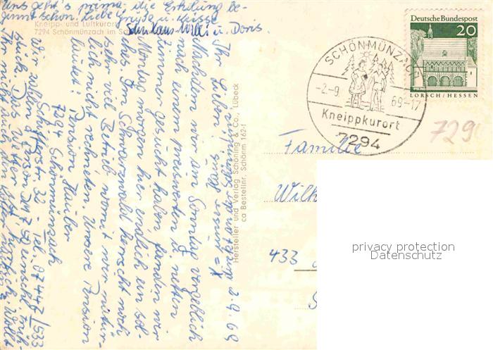 72844408 alte Postkarte Schoenmuenzach Teilansicht Kneipp Luftkurort im Schwarzwald postalisch gelaufen Erhaltung siehe scans [FriedD77] KatCode: 11110008237004