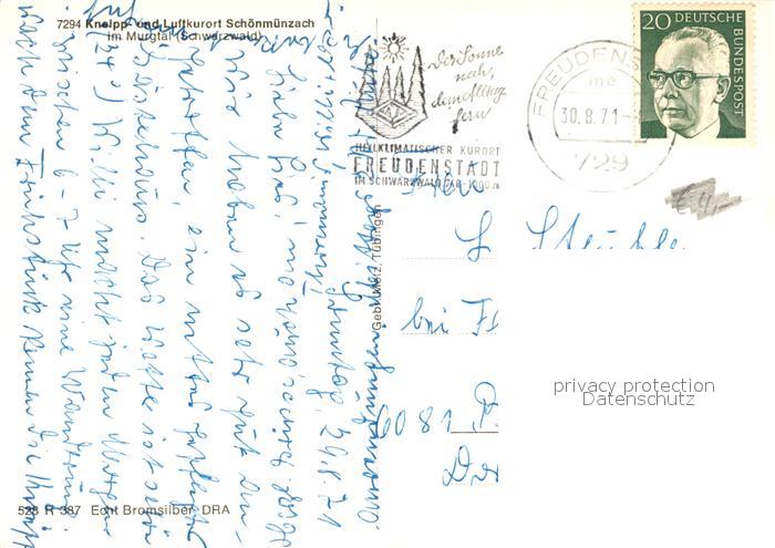 73281478 alte Postkarte Schoenmuenzach Verlobungsfelsen Golfplatz Kurpark postalisch gelaufen Erhaltung siehe scans [NatalD47] KatCode: 11110008237004
