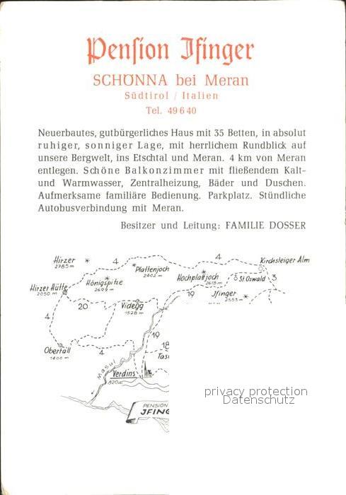 12251350 Schoenna Pension Pfinger bei Meran postalisch nicht gelaufen Erhaltung siehe scans KatCode: 11390