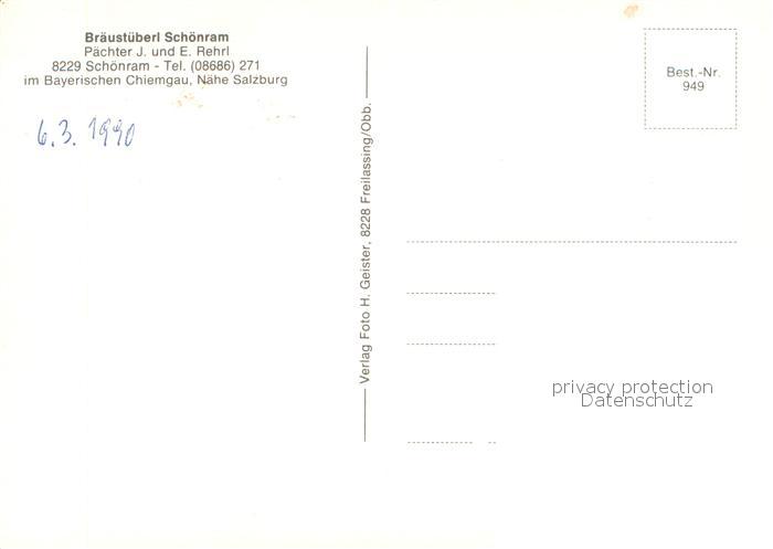 73652821 Schoenram Braeustueberl Restaurant postalisch nicht gelaufen Erhaltung siehe scans [FriedD77] KatCode: 11110009189135