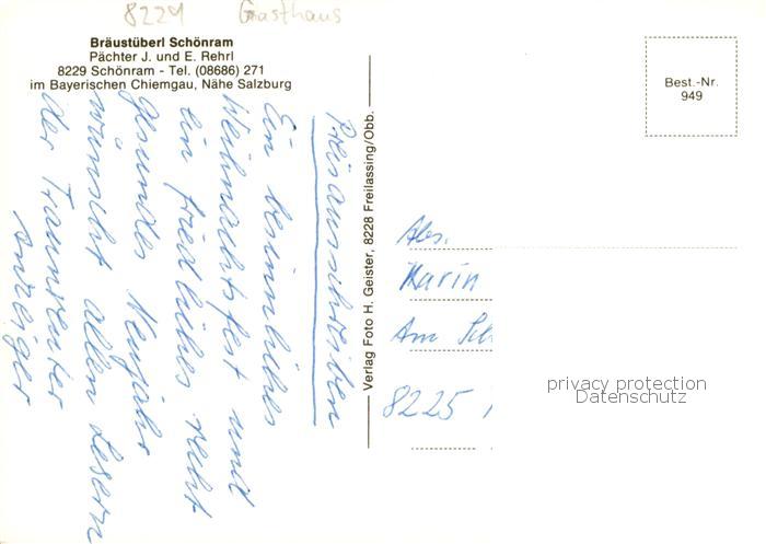 73864504 Schoenram Braeustueberl Schoenram Gastraeume postalisch nicht gelaufen Erhaltung siehe scans [WerneD78] KatCode: 11110009189135