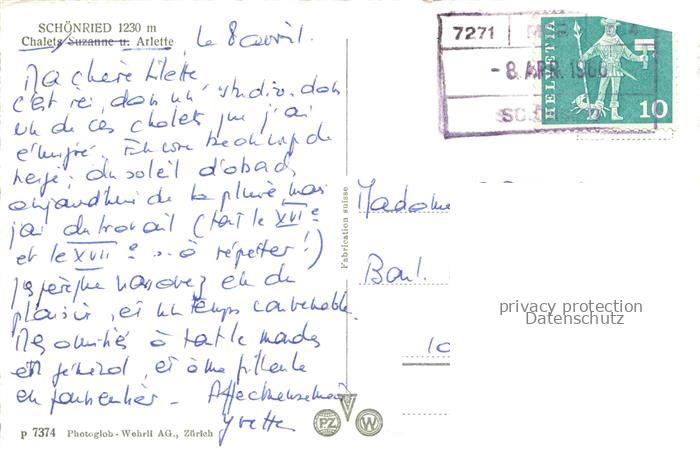 34143632 alte Postkarte Schoenried 1230m Gstaad Saanen BE Chalets Suzanne et Arlette en hiver postalisch gelaufen Erhaltung siehe scans [FriedD77] KatCode: 11470060220620