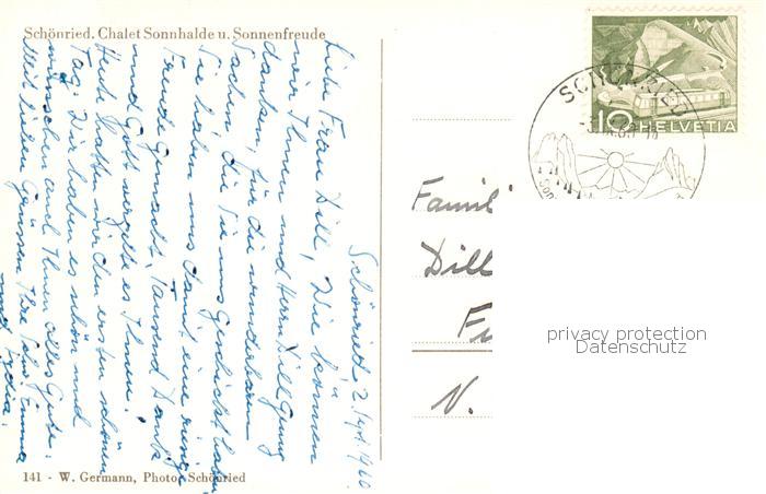 13820070 alte Postkarte Schoenried BE Chalet Sonnhalde und Sonnenfreude postalisch gelaufen Erhaltung siehe scans [WerneD78] KatCode: 11470060220618