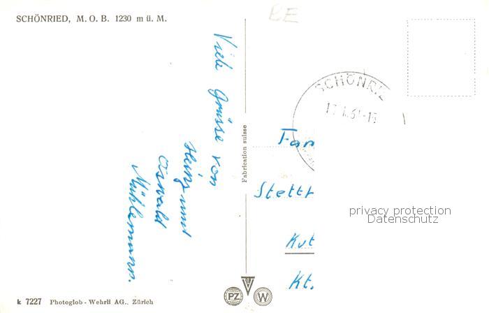 13793899 alte Postkarte Schoenried BE Gesamtansicht Winter Schnee postalisch gelaufen Erhaltung siehe scans [LiesaD40] KatCode: 11470060220618