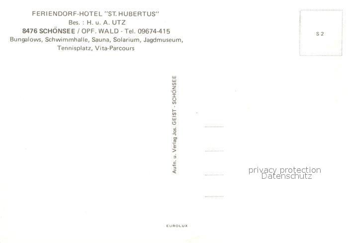 72944011 Schoensee Feriendorf Hotel Sankt Hubertus postalisch nicht gelaufen Erhaltung siehe scans [KathaD81] KatCode: 11110009376160
