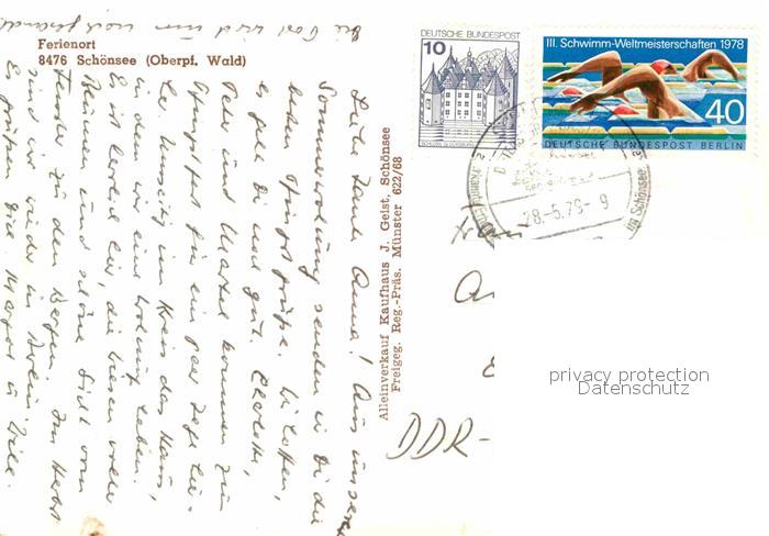 72886601 alte Postkarte Schoensee Ferienort Oberpfaelzer Wald Fliegeraufnahme postalisch gelaufen Erhaltung siehe scans [FriedD77] KatCode: 11110009376160