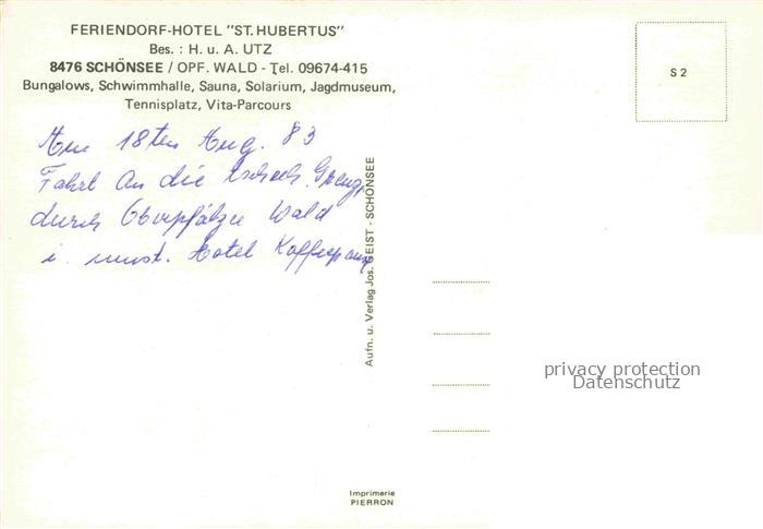 74052539 Schoensee Oberpfalz Feriendorf Hotel St Hubertus postalisch nicht gelaufen Erhaltung siehe scans [WerneD78] KatCode: 11110009376160