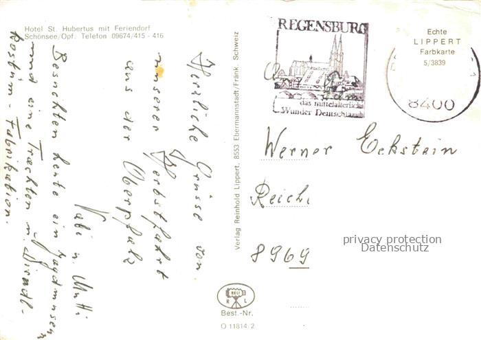 74085257 alte Postkarte Schoensee Oberpfalz Schwandorf Bayern Hotel St Hubertus mit Feriendorf postalisch gelaufen Erhaltung siehe scans [WerneD78] KatCode: 11110009376160