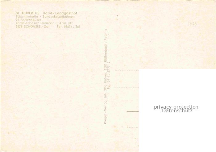 74049474 Schoensee Oberpfalz St. Hubertus Hotel Landgasthof postalisch nicht gelaufen Erhaltung siehe scans [FriedD77] KatCode: 11110009376160