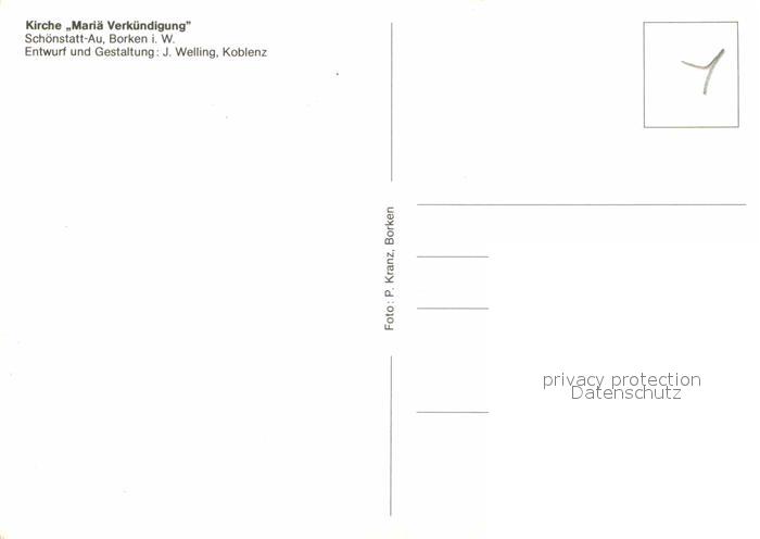 72744007 Schoenstatt Au Borken Kirche Mariae Verkuendigung Innenansicht postalisch nicht gelaufen Erhaltung siehe scans [FriedD77] KatCode: 11110005554012