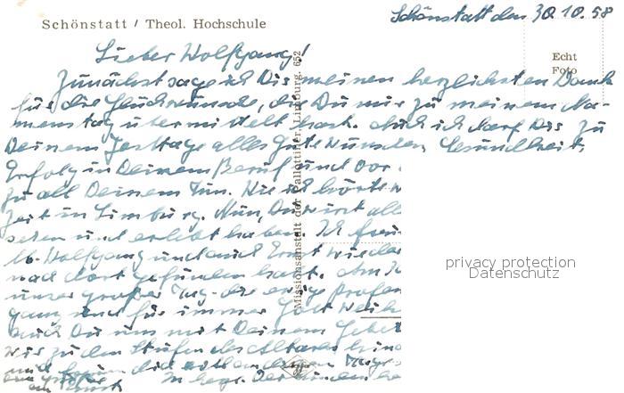 73154179 alte Postkarte Schoenstatt Au Borken Theologische Hochschule postalisch gelaufen Erhaltung siehe scans [LiesaD40] KatCode: 11110005554012