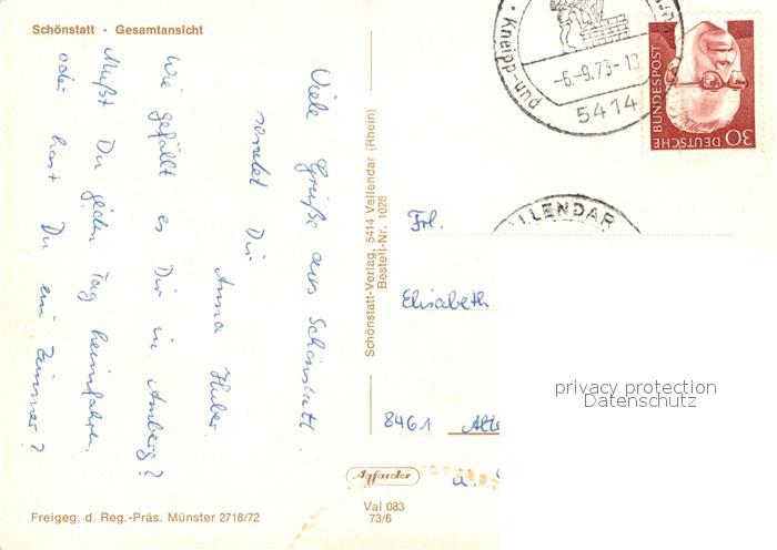 73131436 alte Postkarte Schoenstatt Vallendar Fliegeraufnahme postalisch gelaufen Erhaltung siehe scans [NatalD47] KatCode: 11110007137226