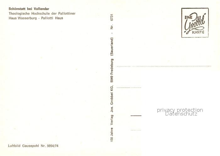 73154309 Schoenstatt Vallendar Fliegeraufnahme Theologische Hochschule der Pallottiner Haus-Wasserburg Palotti-Haus postalisch nicht gelaufen Erhaltung siehe scans [LiesaD40] KatCode: 11110007137226